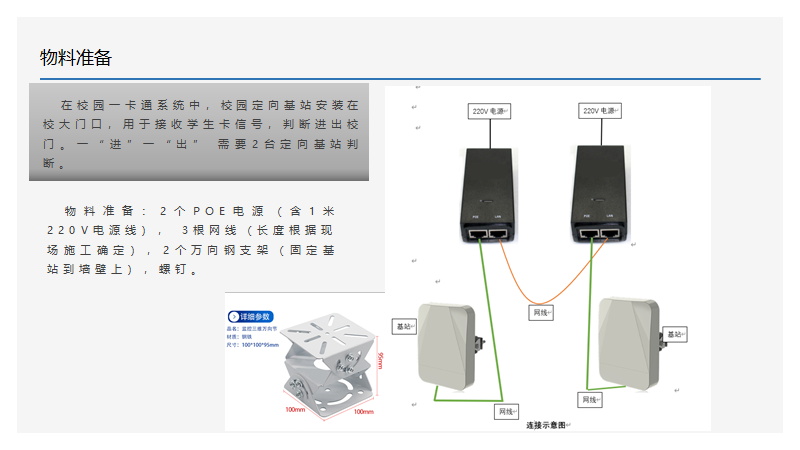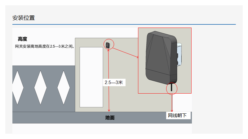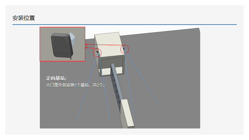 定向智慧網(wǎng)關一般使用在校門、小區(qū)門口,其安裝時需要根據(jù)大門實際尺寸來規(guī)劃基站安裝位置和角度。