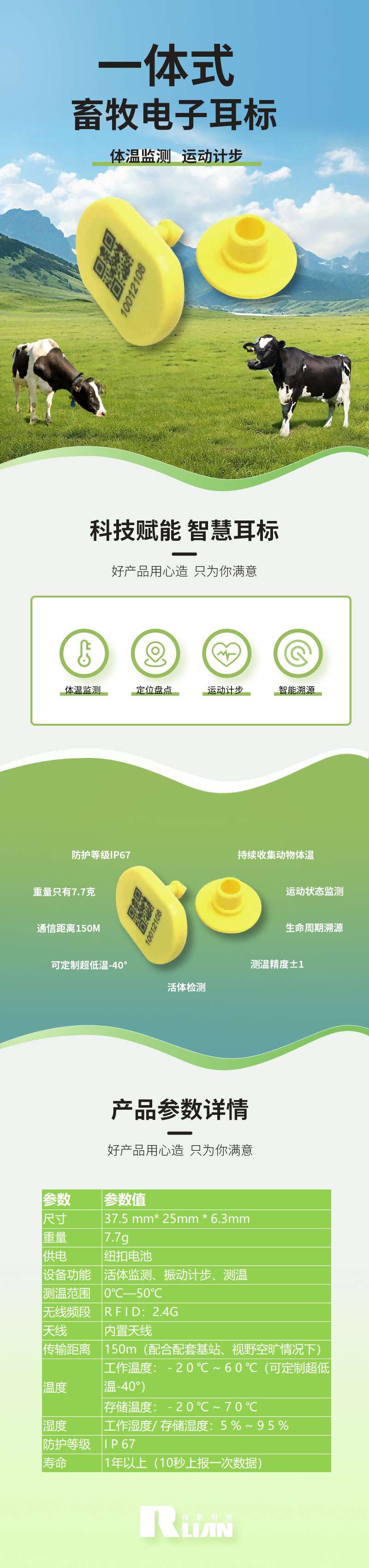 RFID測溫定位耳標是我司自主研發(fā)的2.4G RFID無線測溫終端,該產品佩戴于動物耳朵上,可對動物的溫度、運動狀態(tài)、動物生命周期的溯源等數據進行收集,數據傳輸給RFID接收器后,上傳到大數據平臺,對動物的體溫異常、發(fā)病等可進行有效監(jiān)管、動物生命周期數據進行可靠溯源,被廣泛應用在智慧畜牧解決方案中。