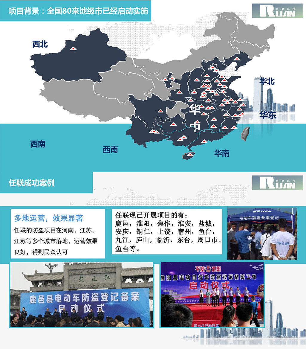 任聯(lián)電動(dòng)車防盜系統(tǒng)屬于成熟方案,在鹿邑、洪澤、銅仁市、淮陽(yáng)等地已經(jīng)成功應(yīng)用。