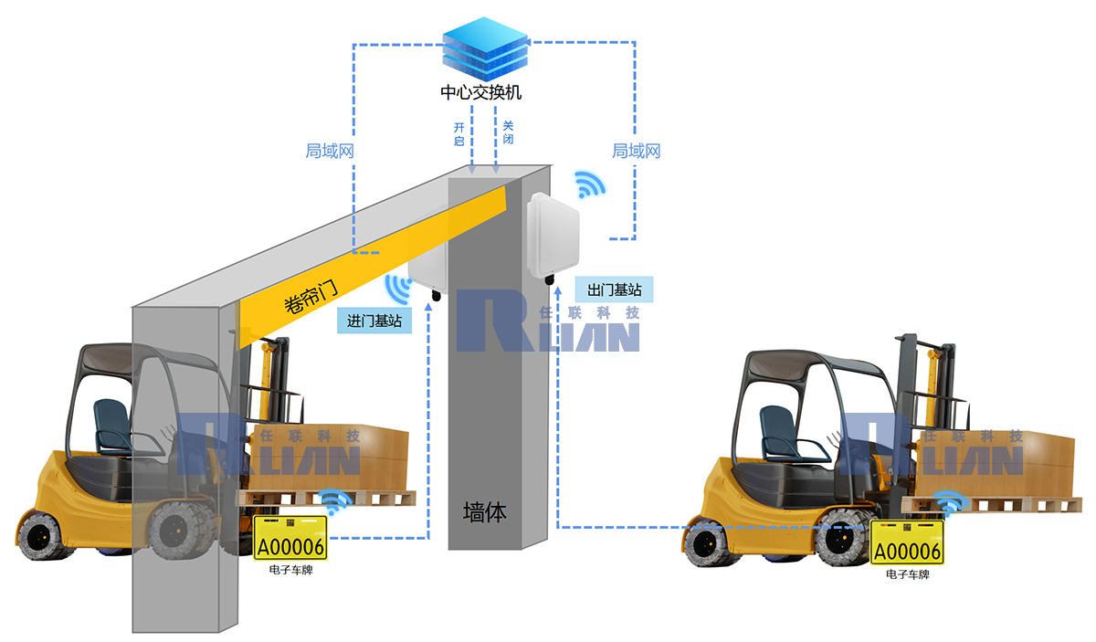 當(dāng)前的倉儲卷簾門主要依賴人員控制,工作人員每天作業(yè)都需要摁鑰匙開啟/關(guān)閉卷簾門很影響工作效率,耗時耗力。任聯(lián)科技采用超高頻技術(shù),不用wifi,不用藍牙,做到無感開門,只要RFID標(biāo)簽安裝至堆垛車上,將超高頻基站與卷簾門電機相連,當(dāng)裝有RFID標(biāo)簽的堆垛車靠近卷簾門,超高頻基站接收數(shù)據(jù)后就可實現(xiàn)無感開啟/關(guān)閉卷簾門,提升工作效率節(jié)約人工成本。