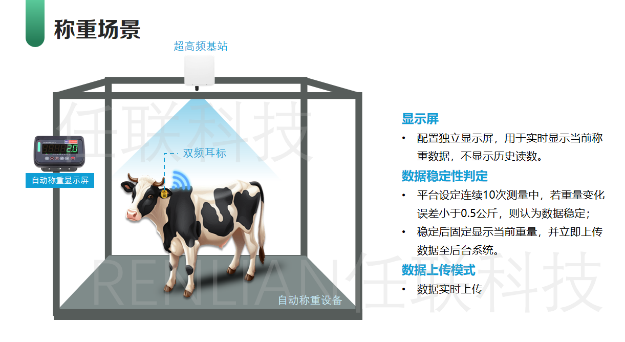 幾千元就可以改造傳統(tǒng)地磅?如何低成本擁有智能稱重稱?采用我們的智能耳標,可實現(xiàn)自動讀取牛只信息,自動上傳牛的重量,無需人員操作。而且可以在平臺上對牛的年齡、增重數(shù)量、增重時間、日期都可以做出分析比較。幫助畜牧主掌握哪些牛是優(yōu)質(zhì)牛,淘汰劣質(zhì)牛。把牛的重量,與喂養(yǎng)管理相結合對比,指導需滿足及時調(diào)整飼料配方或者喂養(yǎng)策略。