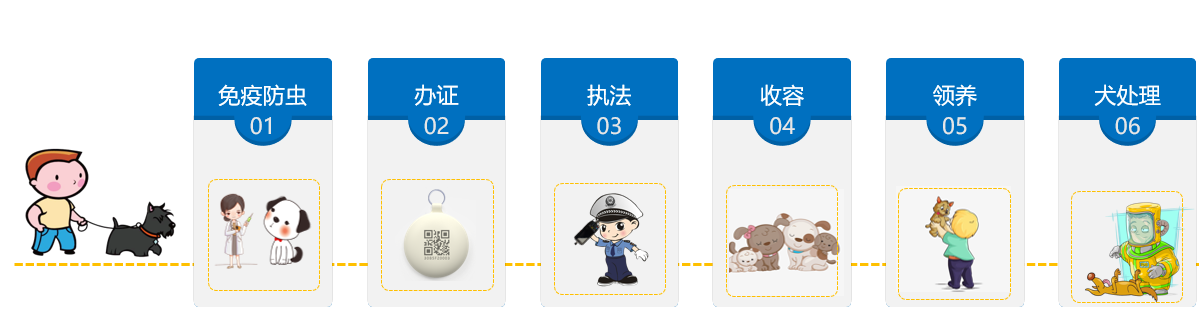 犬只管理平臺(tái)主要由5大業(yè)務(wù)流程:免疫防蟲、辦證、執(zhí)法、收容、領(lǐng)養(yǎng)等。當(dāng)然這個(gè)流程不同城市略有差異。防疫和辦證主要在寵物醫(yī)院比較多,也有社區(qū)設(shè)置便民服務(wù)點(diǎn)。